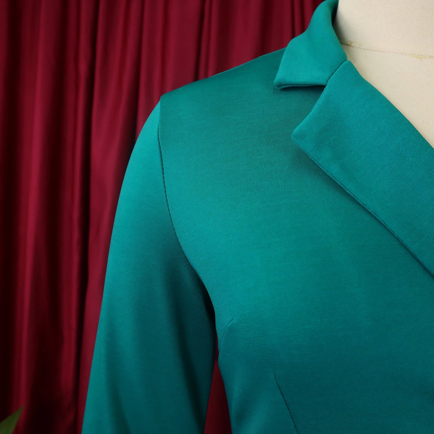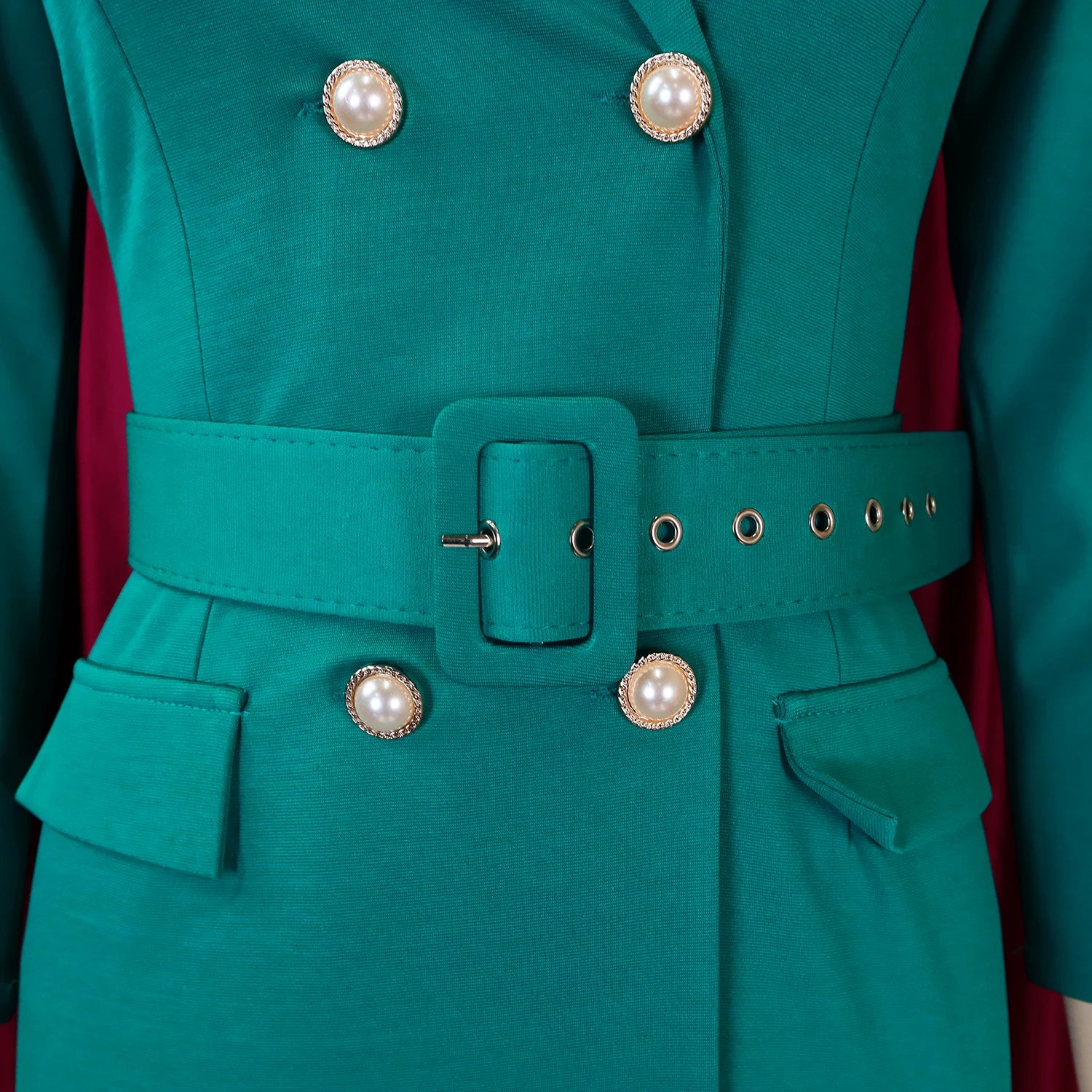 XXXL Office Dress Women Elegant Notched Collar Full Sleeve Belt Waisted Double Breasted Package Hips Mid Calf Formal Work Dress Midi