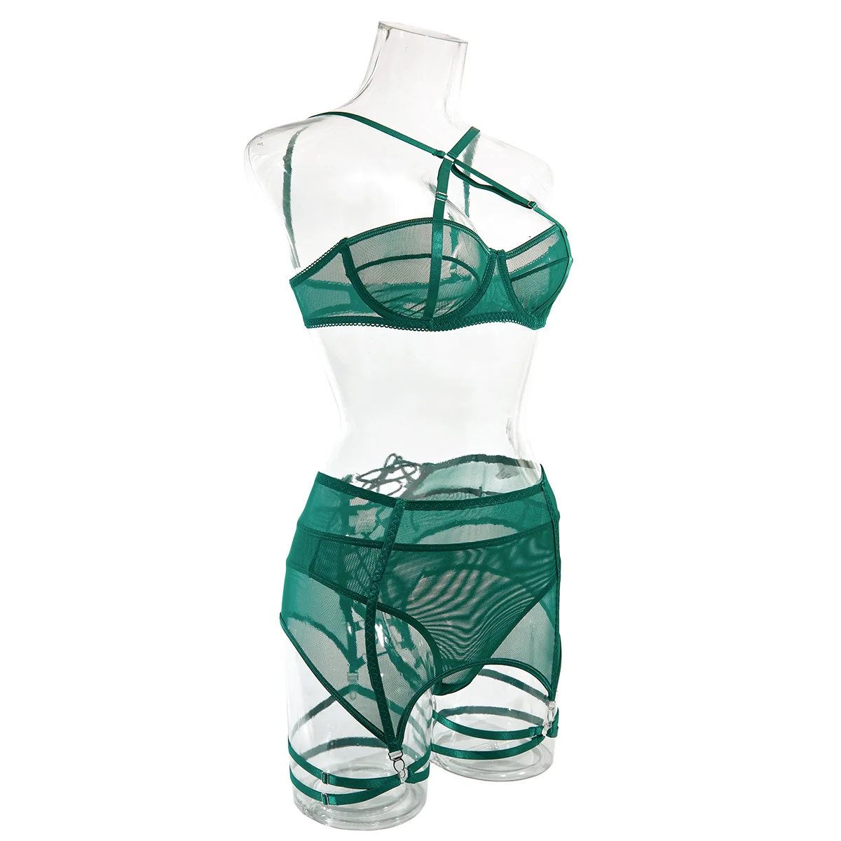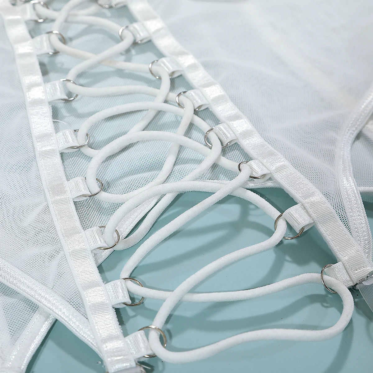 Yimunancy 3-Piece Back Open Lingerie Set Lace Up Bandage Exotic Sets Mesh Transparent Femme Lingerie Fancy Kit