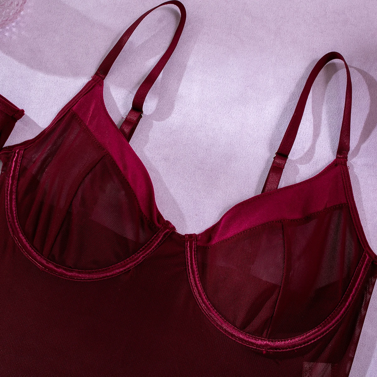 Yimunancy Sheer Mesh Bodysuit Women Patchwork High Cut Skinny Bodysuit Gloves Black Backless Club Body Femme