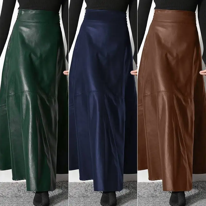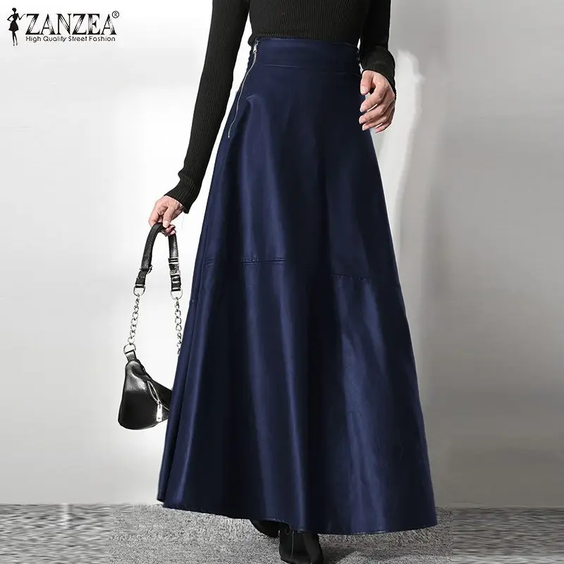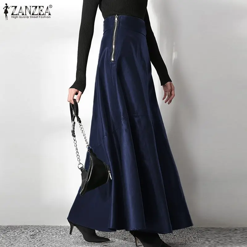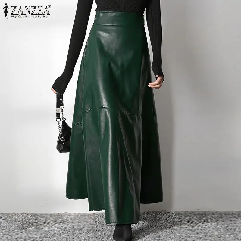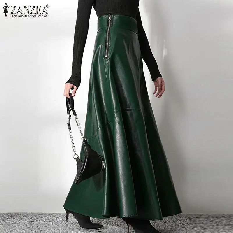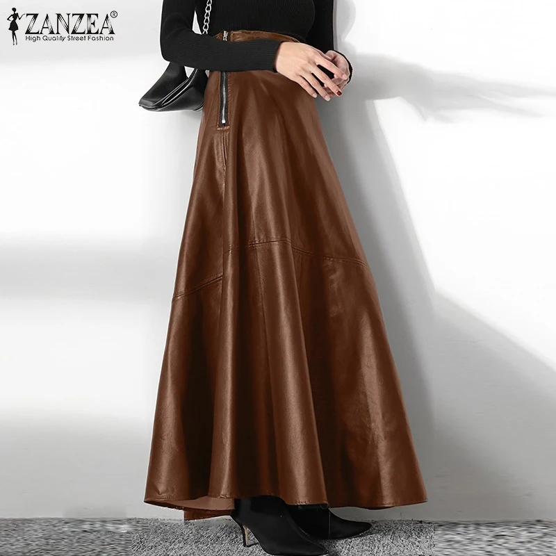 ZANZEA Women's PU Leather Maxi Skirt 2023 Spring Elegant OL Long Saias Fashion Solid Mujer Faldas Casual High Waist Zipper Jupe